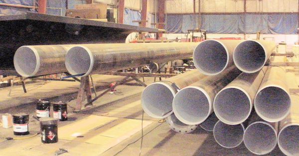 With the ability to bend pipe in house this gives ARM and their customers the needed faster delivery and shorter down time. Bends can be produced, machined or welded, blasted, rubber or ceramic lined and painted in our plant. Delivery to the jobsite can be done with our own fleet of semi’s and trucks. We know of no other fabricator or lining company that has or can offer these services.