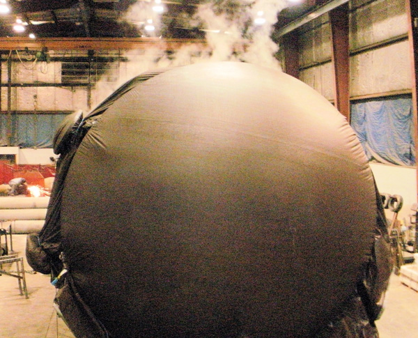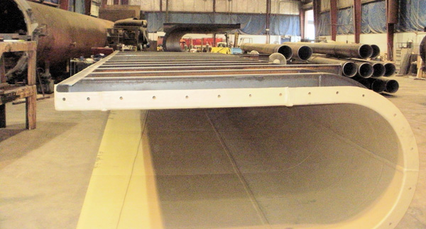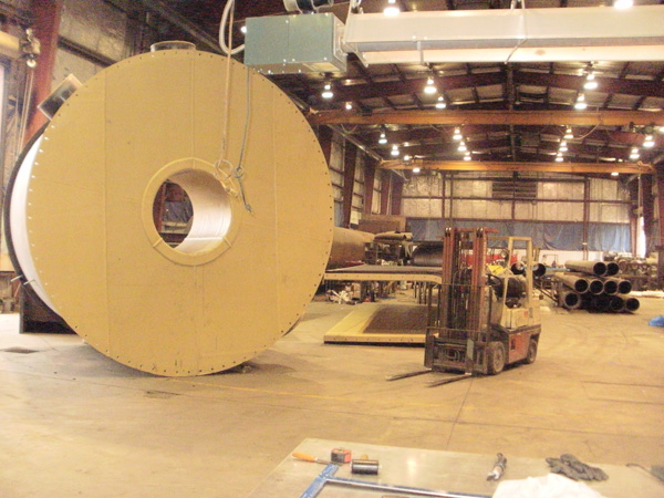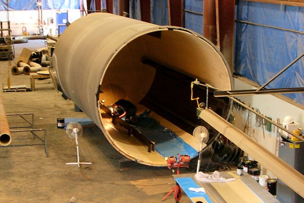 The ability to open steam cure those larger weldments during the winter months can be done inside our plant. This creates a better bond and cure of the finished product giving it a longer overall life. We have cured up to 15’ diameter x 40’ long vessels inside our plant.
